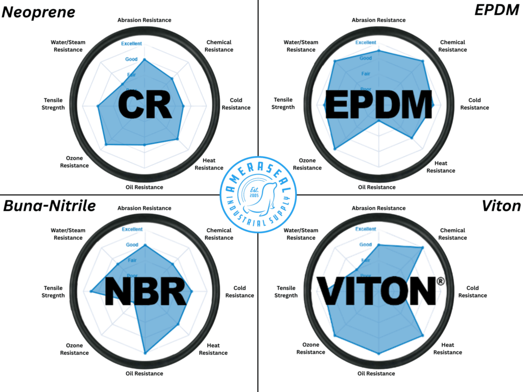 Choosing the Right Rubber For Your ApplicationAmerasealElastomer GuideRubber gasketing is one of the most common sealing solutions in industrial applications, but it’s also one of the most misapplied. Different rubber materials perform very differently depending on temperature, pressure, and chemical exposure, and choosing the right one for the job is not always clear cut.Ameraseal supplies…