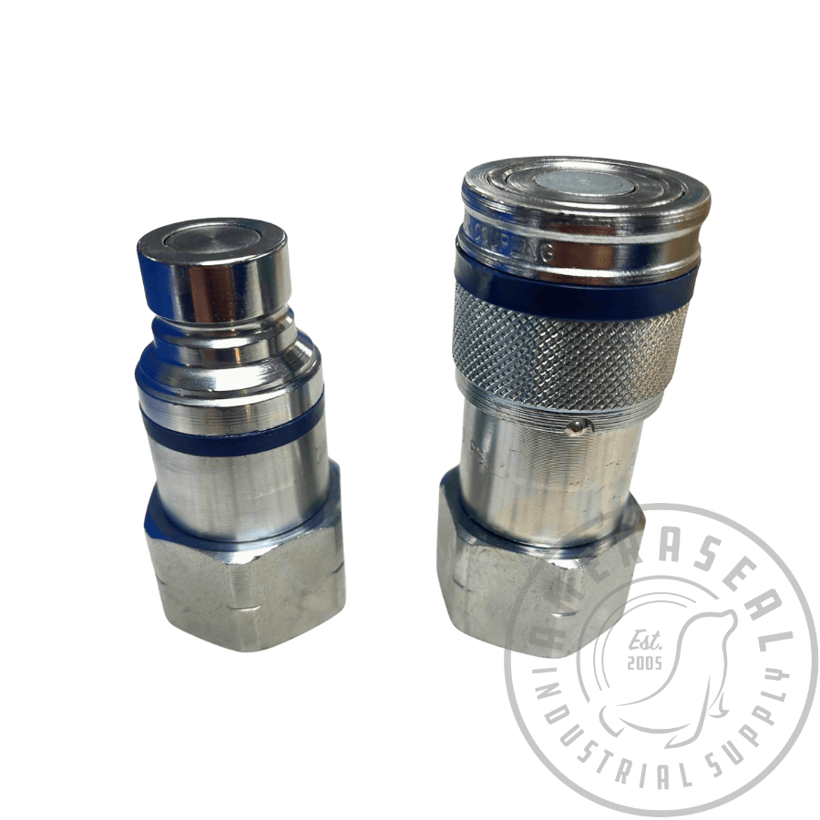 Flat face quick connect couplers designed to minimize fluid loss and prevent contamination in hydraulic systems. Ideal for high-pressure applications where cleanliness, safety, and easy coupling are critical, including industrial and mobile equipment use.